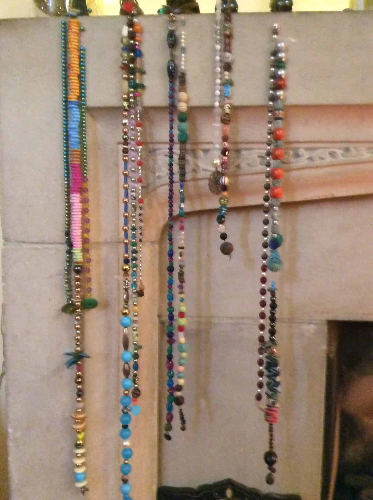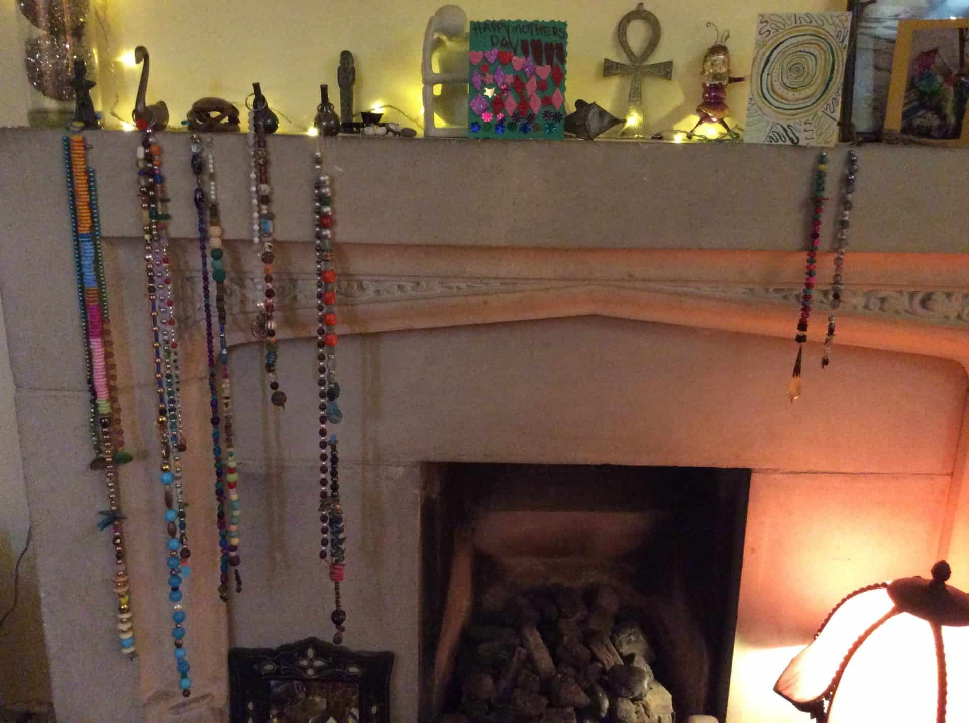 Tess’ beads really do look awesome on the fireplace.